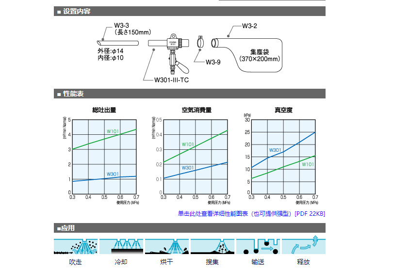 請(qǐng)用它來吹、吸、運(yùn)。我們有多種產(chǎn)品可以滿足您的需求,例如可以代替鑷子使用的超緊湊型鉛筆型,適合從細(xì)小區(qū)域收集灰塵,以及可以進(jìn)行全面噴砂的鼓風(fēng)型.尤其是螺旋噴射式產(chǎn)品,有效利用壓縮空氣作為動(dòng)力源,槍內(nèi)完全呈圓柱形,無障礙物,完全不用擔(dān)心吸運(yùn)過程中有物體堵塞內(nèi)部。通過改變吸嘴的方向,可以在吹氣和吸氣之間切換,可用于輸送、收集、冷卻、排氣等。產(chǎn)品系列的小內(nèi)徑為 2.8mm 至 75mm。如果您有任何其他要求,例如材料,請(qǐng)隨時(shí)與我
